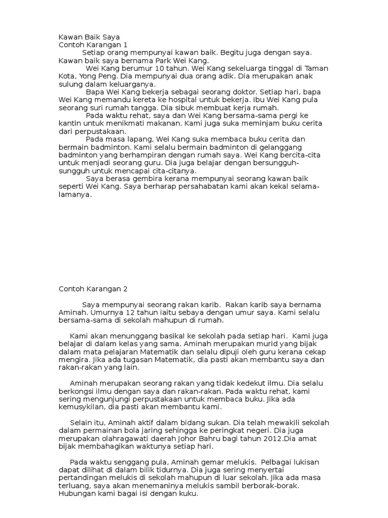 Karangan Tuition 456 Copy Docx Tahun 4 Karangan Sahabat Baik Saya Kawan Karib Saya Kerangka Karangan 1 Pendahuluan Pengenalan Diri Nama Course Hero